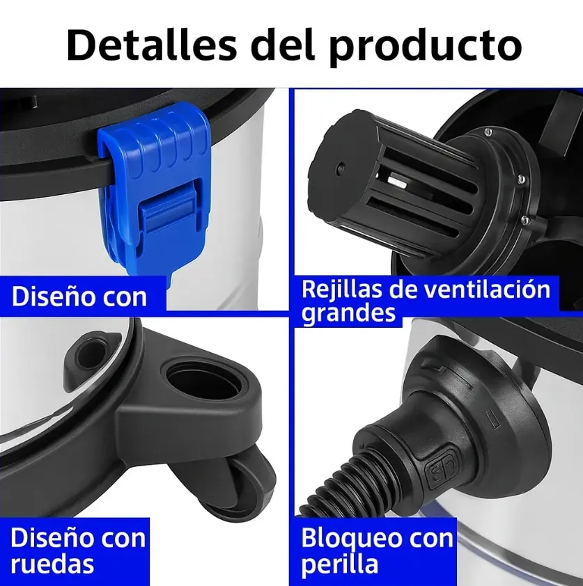 La Marvo HVC-007 es una aspiradora profesional pensada para ofrecer máxima potencia, gran capacidad y múltiples funciones, ideal para hogares, talleres, oficinas y negocios.