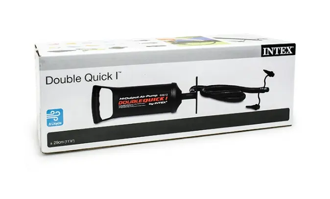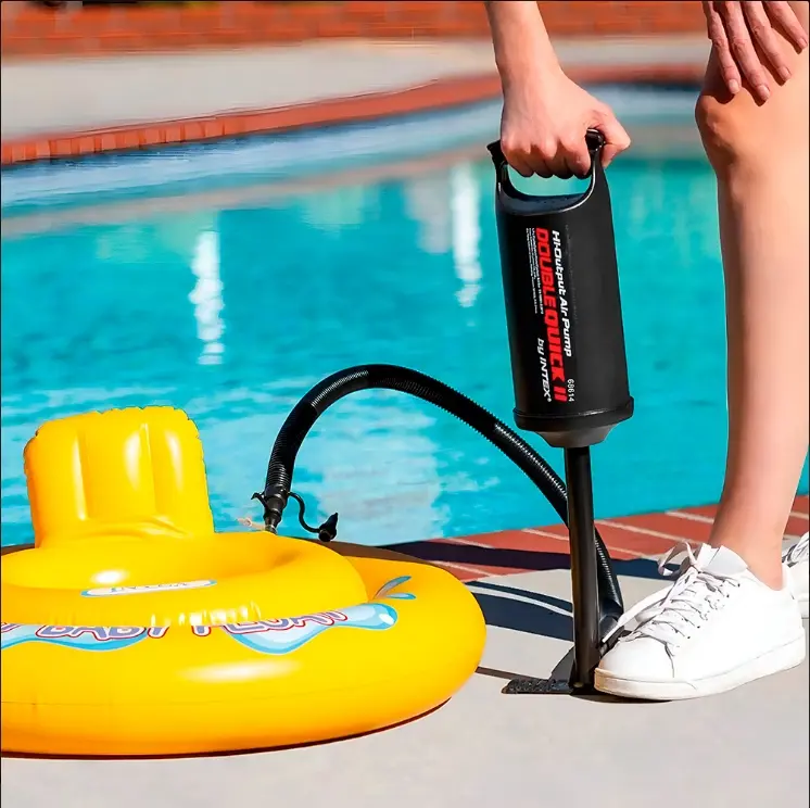 INFLADOR DOBLE ACCION 29CM INTEX -Modelo:LH-3249 -Color:NEGRO -Material:plastico MEDIDAS -Largo 29cm CARACTERISTICAS *Bombea aire tanto al avanzar como al retirarse hacia atrás *Aprobado por TUV RL *Manguera tipo acordeón con tres boquillas diferentes que lo hace compatible con todas las válvulas de juguetes inflables, colchones, muebles, piscinas, y otros.