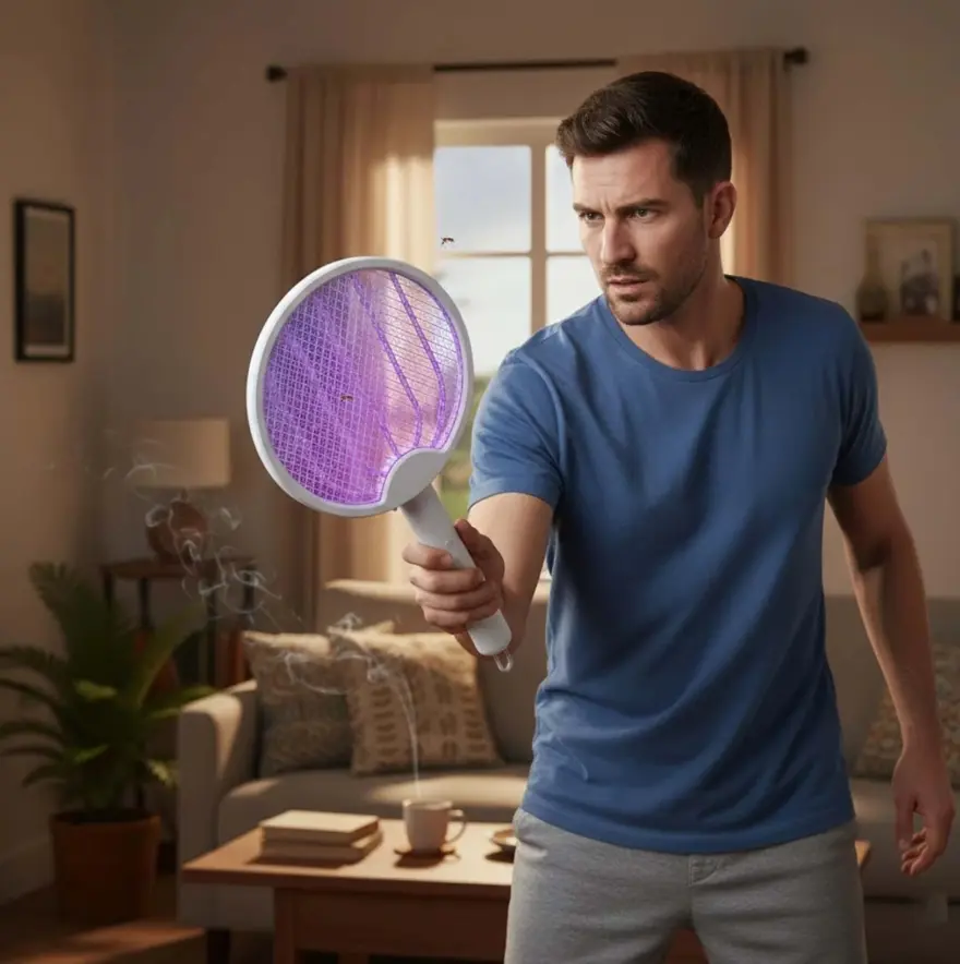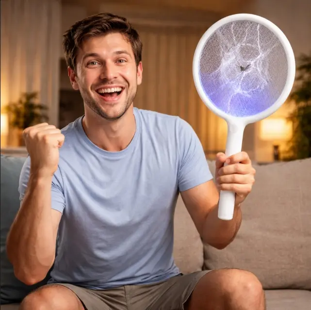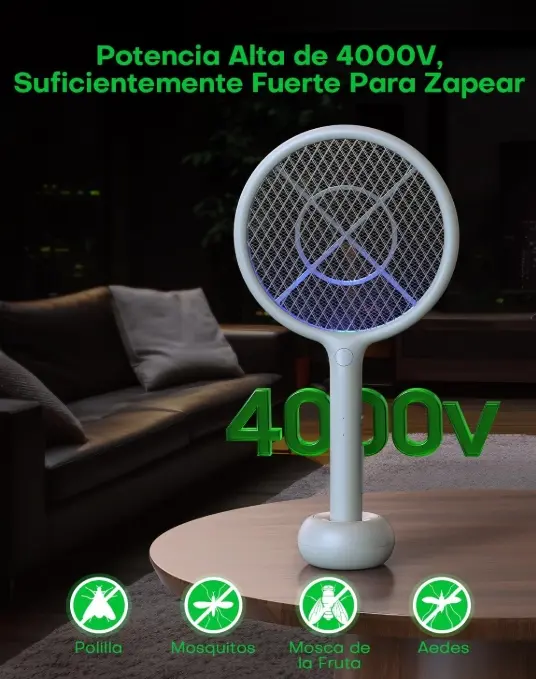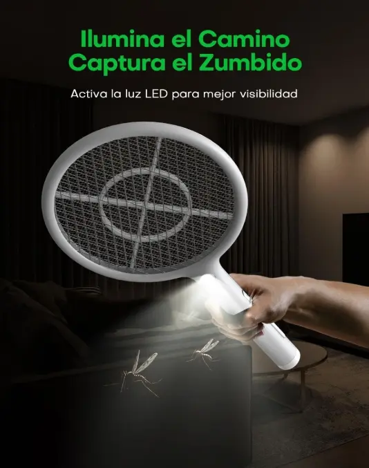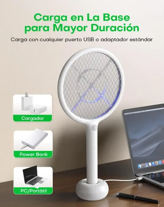 Nuestra Raqueta Mata Insectos con Base Recargable elimina mosquitos al instante, sin químicos y con total comodidad.