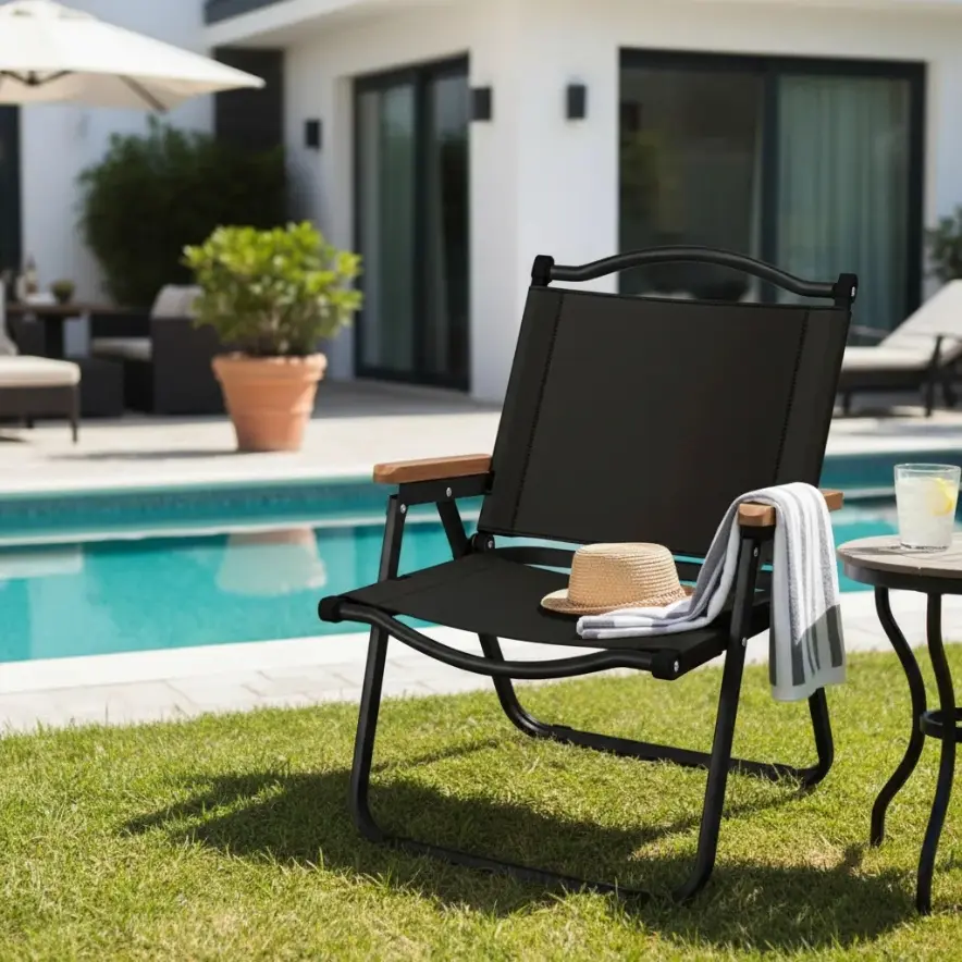 Silla Reposera Plegable De Lona Y Aluminio Portátil Color Negro